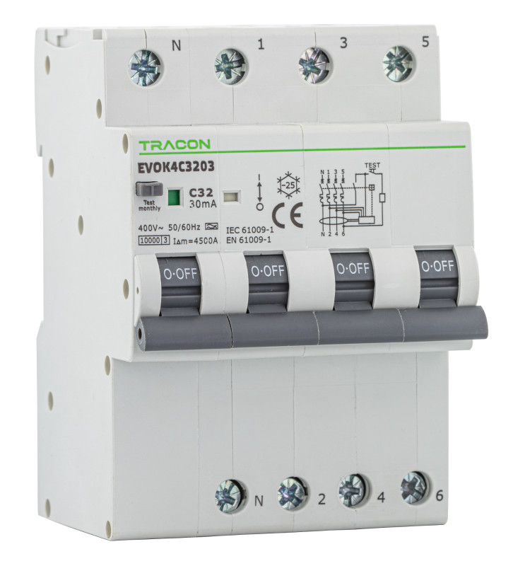 Kombinált védőkapcsoló, 4P, 4modul, C karakterisztika - EVOK4C603