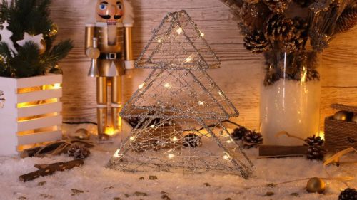 LED karácsonyi fenyő, ezüst, fém, elemes (X22037) - CHRTRG15SWW