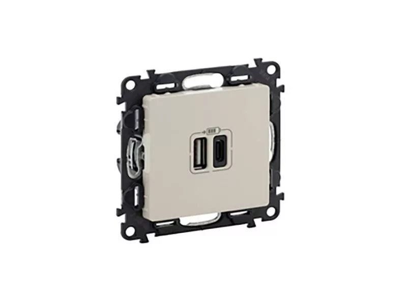 Legrand 753206 - Valena Life Töltőaljzat Kettős USB C-típusú + USB A-típusú csatlakozóval, 5V–3A–