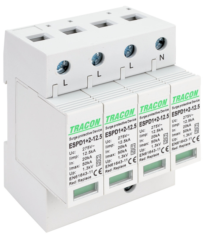 T1+T2 AC típusú túlfeszültséglevezető, cserélhető betéttel - ESPD1+2-12.5-4P