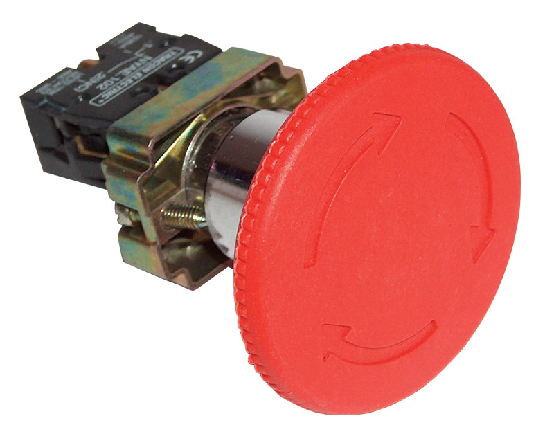 Reteszelt gombafejű vészgomb, fémalap, piros, elfordítással - NYG542P40